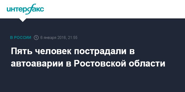 Москва. 6 января. INTERFAX.RU - Пять человек, в т.ч. трехлетний ребенок пострадали в ДТП в районе г. Батайска (Ростовская область), сообщили агентству "Интерфакс-Юг" в пресс-службе ГУ МВД России по Ростовской области.
