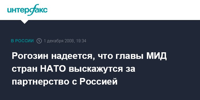 Рогозин надеется, что главы МИД стран НАТО выскажутся за партнерство с Россией