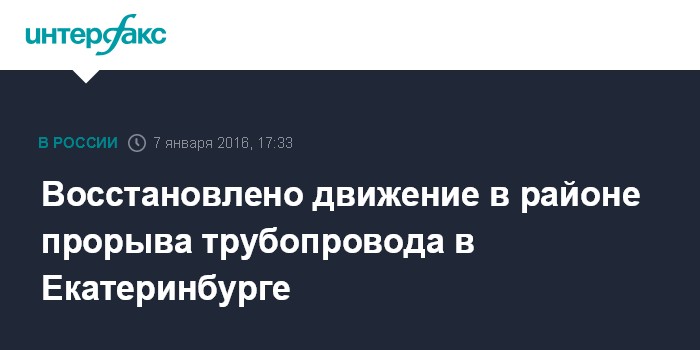 В пресс-службе ГУ МВД по Свердловской области, "Интерфаксу" уточнили, что движение было восстановлено в 16:54 (14:54 мск). "Место прорыва ограждено до окончания ремонтных работ. На данном участке движение организовано в одну сторону. Спецтехника убрана и покинула место коммунальной аварии", - уточнили в ведомстве.