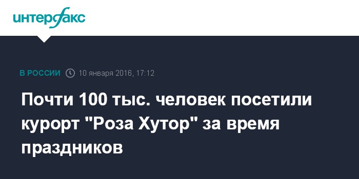 Москва. 10 января. INTERFAX.RU – Всесезонный горнолыжный курорт "Роза Хутор" за период новогодних каникул принял почти 100 тысяч человек, - сказал "Интерфаксу" заместитель генерального директора ООО "Роза Хутор" Александр Белокобыльский в воскресенье.