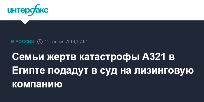 Семьи жертв катастрофы A321 в Египте подадут в суд на лизинговую компанию
