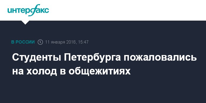 По словам собеседника агентства, студенты 30 общежитий из 13 вузов Петербурга пожаловались на низкую температуру в комнатах. Среди них - учащиеся Российского государственного гидрометеорологического университета, Горного университета, Санкт-Петербургского университета информационных технологий, механики и оптики, Военмеха, Санкт-Петербургского государственного университета и других вузов.