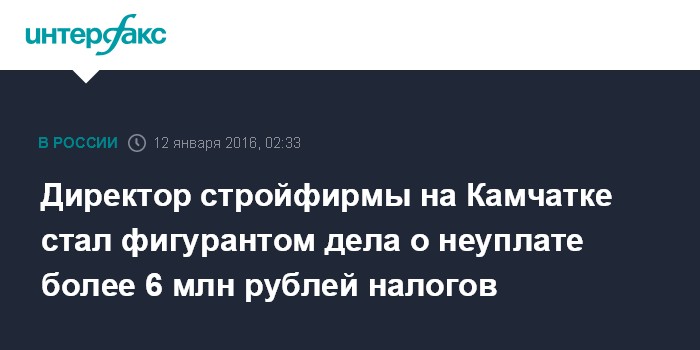 Директор стройфирмы на Камчатке стал фигурантом дела о неуплате более 6 млн рублей налогов