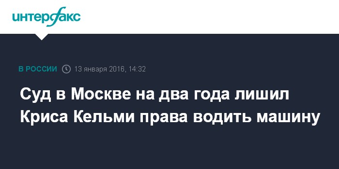 Суд в Москве на два года лишил Криса Кельми права водить машину