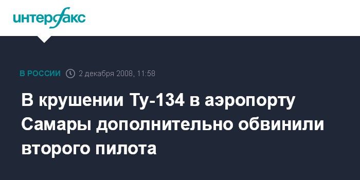 В крушении Ту-134 в аэропорту Самары дополнительно обвинили второго пилота