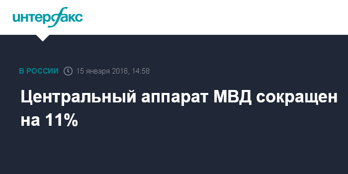 Москва. 15 января. INTERFAX.RU - Министерство внутренних дел в ходе оптимизации структуры ведомства сократило численность центрального аппарата на 11%.