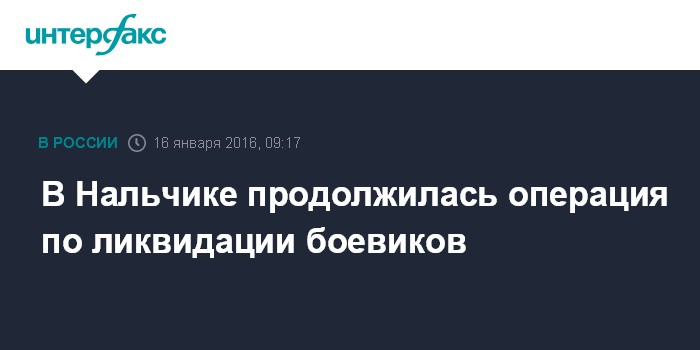 Москва. 16 января. INTERFAX.RU - В Нальчике продолжается спецоперация по ликвидации боевиков, сообщили агентству "Интерфакс" в правоохранительных органах Кабардино-Балкарии.