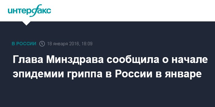 Москва. 18 января. INTERFAX.RU - Министр здравоохранения РФ Вероника Скворцова предупредила, что эпидемия гриппа в России начнется раньше обычных сроков.