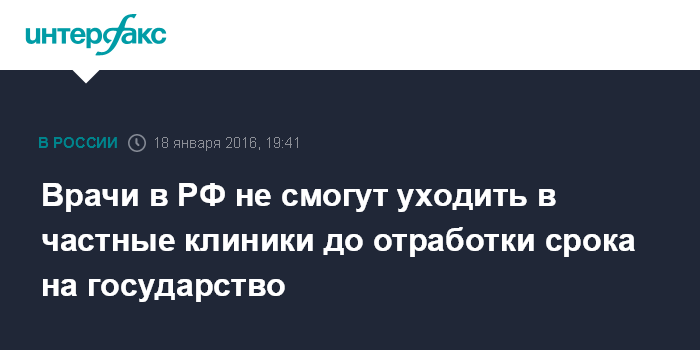 Врачи в РФ не смогут уходить в частные клиники до отработки срока на государство