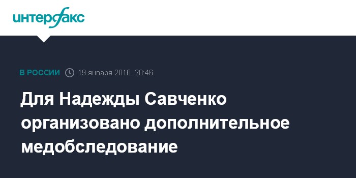 Москва. 19 января. INTERFAX.RU - Бывшая украинская летчица Надежда Савченко пройдет дополнительное медицинское обследование в связи с голодовкой, сообщили "Интерфаксу" во вторник в пресс-службе уполномоченного по правам человека в РФ Эллы Памфиловой.