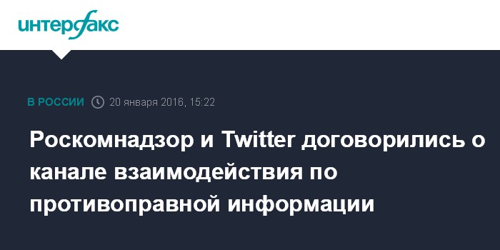 Москва. 20 января. INTERFAX.RU - Роскомнадзор и Twitter договорились оптимизировать рабочие каналы взаимодействия по вопросам удаления противоправной информации, говорится в сообщении ведомства.