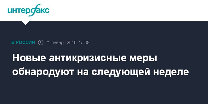 Москва. 21 января. INTERFAX.RU - Правительство РФ на следующей неделе огласит основные мероприятия нового антикризисного плана, заявила вице-премьер РФ Ольга Голодец.