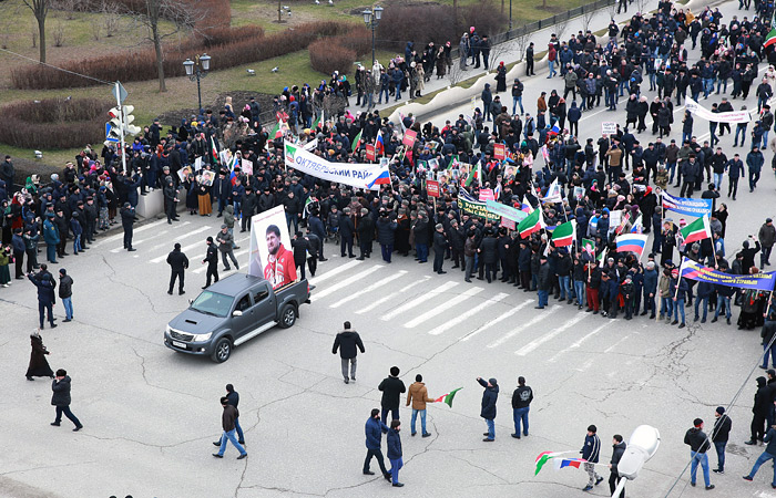 Ранее сообщалось, что участники митинга заполнили центральную площадь Грозного и прилегающие к ней проспекты и скверы. Участники держали в руках плакаты с лозунгами в поддержку политического курса Владимира Путина и деятельности Рамзана Кадырова. На митинге также можно было увидеть множество слоганов с критикой несистемной оппозиции, которую участники акции называют "пятой колонной".