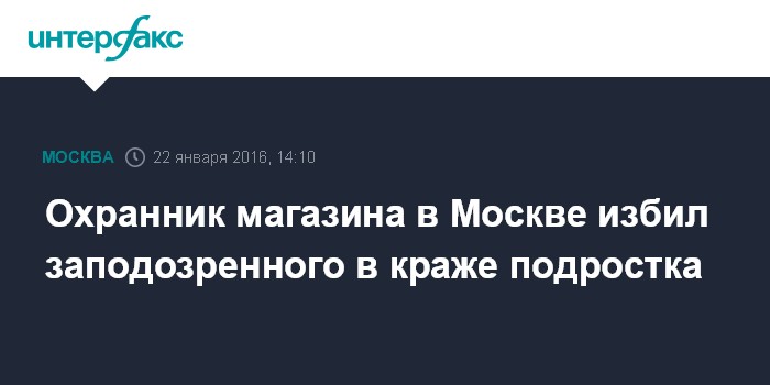 Москва. 22 января. INTERFAX.RU - Охранника магазина в Москве заподозрили в избиении подростка, якобы совершившего кражу, сообщили "Интерфаксу" в пресс-службе ГУ МВД по Москве.