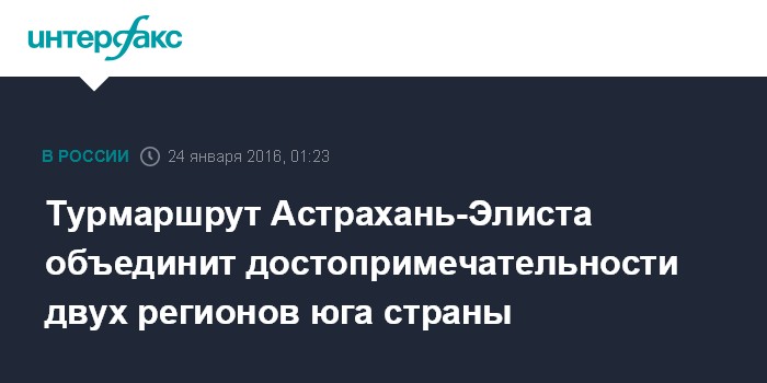 Москва. 24 января. INTERFAX.RU - Калмыкия и Астраханская область планируют в этом году открыть межрегиональный туристический маршрут в рамках совместного проекта "Великий шелковый путь", сообщил "Интерфаксу" министр культуры и туризма республики Хонгор Эльбиков.