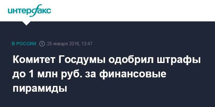 Комитет Госдумы одобрил штрафы до 1 млн руб. за финансовые пирамиды