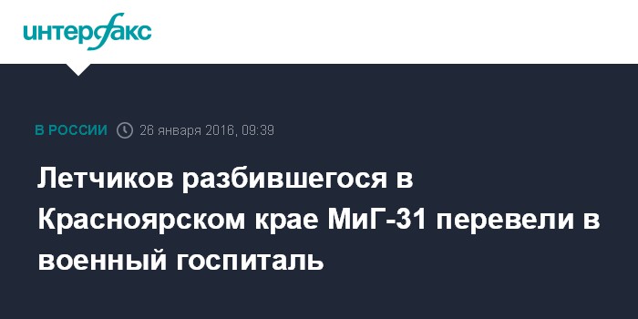 Москва. 26 января. INTERFAX.RU - Пилоты самолета МиГ-31, который разбился накануне в Красноярском крае, покинули краевую клиническую больницу, сообщила "Интерфаксу" пресс-секретарь медучреждения Ирина Кочеткова.