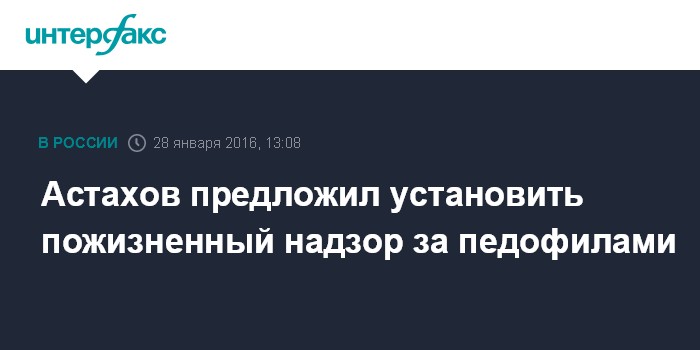 "Лицо, признанное страдающим аномалией сексуального предпочтения, называемым педофилией, должно пожизненно находиться под административным надзором", - сказал Астахов.
