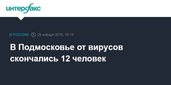 Москва. 28 января. INTERFAX.RU - В Московской области зарегистрировано 12 смертей от осложнений после вирусных инфекций, сообщила глава Минздрава Подмосковья Нина Суслонова.
