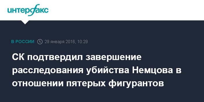 СК подтвердил завершение расследования убийства Немцова в отношении пятерых фигурантов