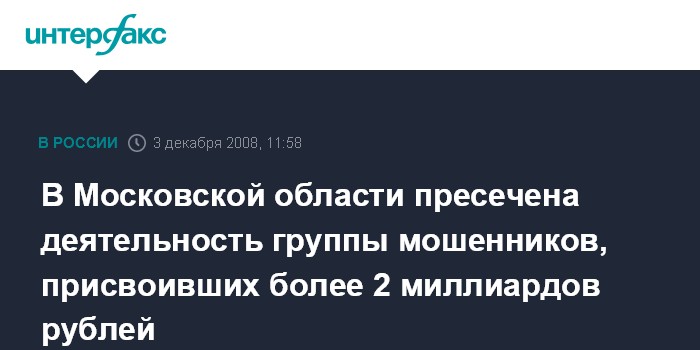 "Следствием доказано, что только на территории Московского региона мошенники присвоили более 2 млрд рублей", - говорится в сообщении пресс-службы ГУВД Московской области, размещенном в среду на официальном сайте МВД России.