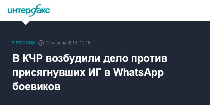 "27 января следственным управлением Карачаево-Черкесской республики возбуждены уголовные дела в отношении группы из десяти человек. Эти люди собирались в условном месте, сделали видеозапись присяги ИГИЛ и отправили ее по WhatsApp в Сирию, выразив свою готовность вести "священную борьбу". Они установили контакт с одним из главарей ИГ(террористическая организация, запрещена в РФ - ИФ), получили инструкции и приступили к подготовке терактов", - заявил Пржездомский журналистам в пятницу