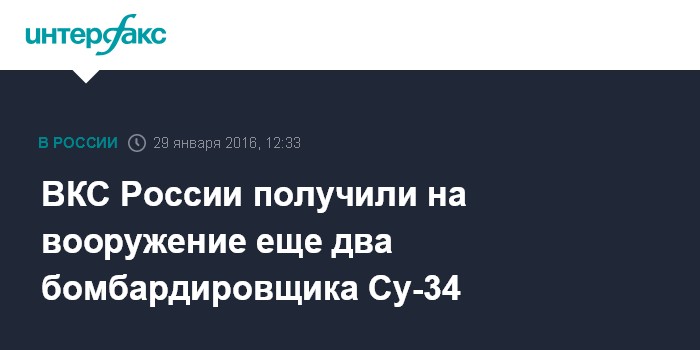 ВКС России получили на вооружение еще два бомбардировщика Су-34