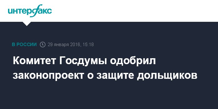 Москва. 29 января. INTERFAX.RU - Комитет Госдумы по финансовому рынку рекомендовал нижней палате парламента принять в первом чтении правительственный законопроект об ответственности застройщиков перед дольщиками при строительстве многоквартирных домов.