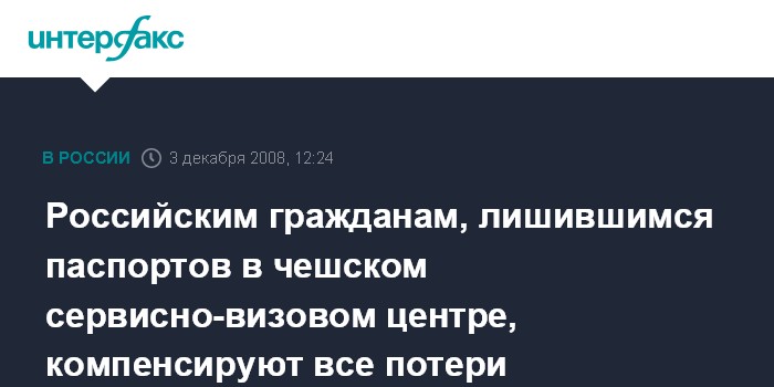"Посольство искренне сожалеет, что в результате происшествия пострадали российские граждане, собирающиеся ехать в Чехию. По сведениям посольства, российские субъекты, несущие ответственность за потерю паспортов, компенсируют пострадавшим гражданам РФ все потери", - говорится в заявлении чешской дипмиссии, поступившем в "Интерфакс" в среду.