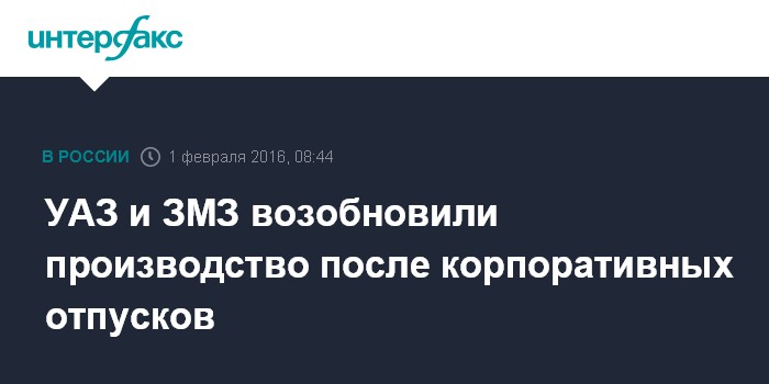 Москва. 1 февраля. INTERFAX.RU - АО "Ульяновский автомобильный завод" ("УАЗ", входит в группу Sollers) в понедельник возобновило сборку автомобилей, приостановленную 31 декабря 2015 года в связи с корпоративным отпуском и модернизацией производственной площадки.