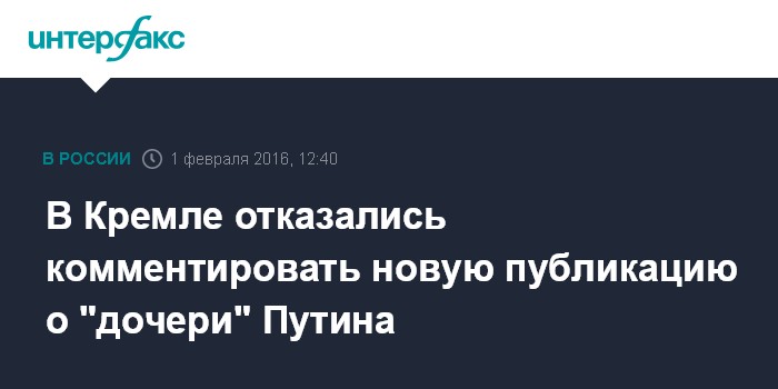 Так пресс-секретарь Путина прокомментировал появившуюся в журнале The New Times статью, в которой рассказывается о личной жизни Марии Фаассен, которую авторы статьи называют старшей дочерью президента.