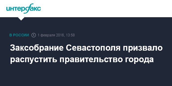 "Признать деятельность правительства Севастополя за период с апреля 2014 по декабрь 2015 года неудовлетворительной. Рекомендовать губернатору города Меняйло принять решение об отставке правительства Севастополя", - говорится в постановлении Заксобрания.