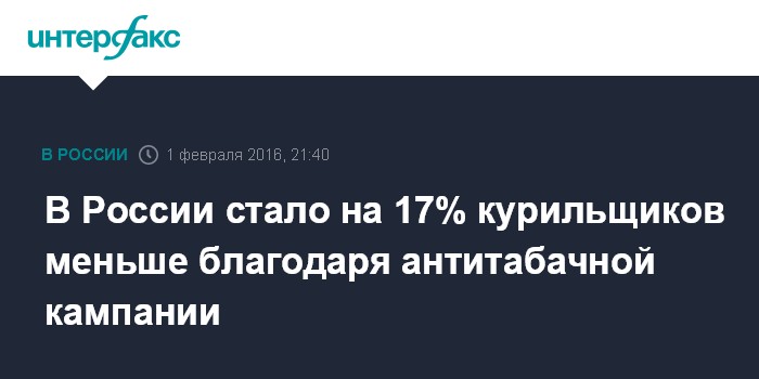 "В целом за время реализации активной антитабачной кампании в нашей стране число потребителей табака уменьшилось, по независимым оценкам, примерно на 17%", - говорится в сообщении.
