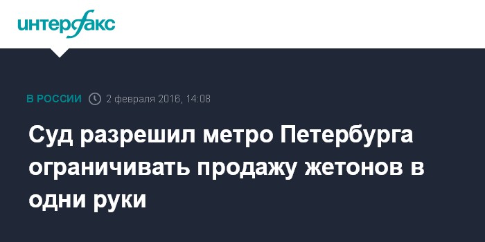 "Ввод ограничения продаваемых жетонов по принципу "один жетон в одни руки" являлся средством разового проезда пассажира и не нарушал права пассажиров (потребителей) на совершение разовой поездки в метрополитене", - говорится в определении арбитража СЗФО.