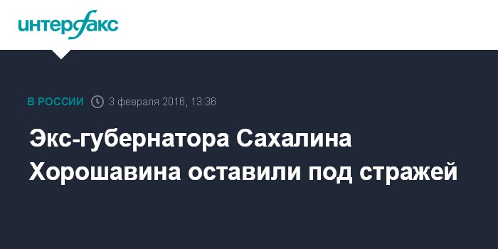 Москва. 3 февраля. INTERFAX.RU - Мосгорсуд признал законным продление ареста до конца февраля бывшему губернатору Сахалинской области Александру Хорошавину, обвиняемому в получении многомиллионных взяток.
