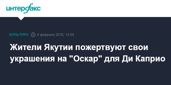 Москва. 4 февраля. INTERFAX.RU - Жители Якутии собирают средства на серебряную статуэтку "Оскар" для американского актера Леонардо Ди Каприо.