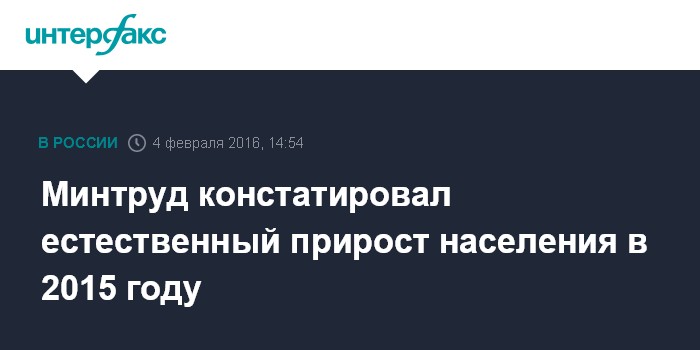 Минтруд констатировал естественный прирост населения в 2015 году