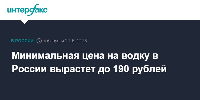 Москва. 4 февраля. INTERFAX.RU - Росалкогольрегулирование начало подготовку приказа о повышении минимальной цены на водку.