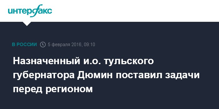 Назначенный и.о. тульского губернатора Дюмин поставил задачи перед регионом