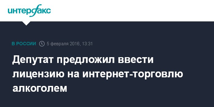 Москва. 5 февраля. INTERFAX.RU - Зампред думского комитета по экономической политике Виктор Звагельский (фракция "Единая Россия") внес в Госдуму законопроект о введении лицензии на розничную продажу алкогольной продукции через интернет.