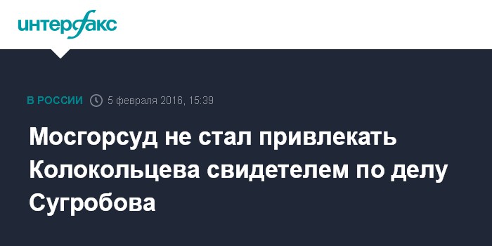 Мосгорсуд не стал привлекать Колокольцева свидетелем по делу Сугробова