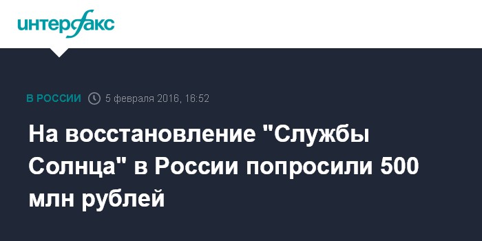 На восстановление "Службы Солнца" в России попросили 500 млн рублей