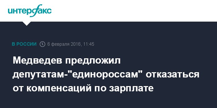 Москва. 6 февраля. INTERFAX.RU - Премьер-министр России Дмитрий Медведев предложил депутатам-"единороссам" отказаться от компенсаций по зарплате из-за досрочного прекращений их полномочий в связи с предстоящими выборами.