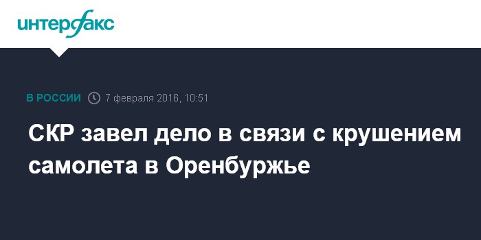 Москва. 7 февраля. INTERFAX.RU - В Оренбургской области возбуждено уголовное дело по факту крушения самолета Ан-2, повлекшего гибель трех человек, сообщается в воскресенье на официальном сайте СК РФ.