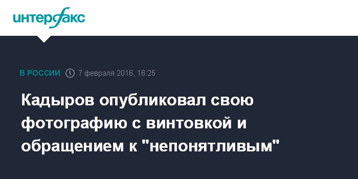 Москва. 7 февраля. INTERFAX.RU - Глава Чечни Рамзан Кадыров разместил в инстаграме свою фотографию с винтовкой с оптическим прицелом. Она подписана фразой: "Кто не понял, тот поймет".