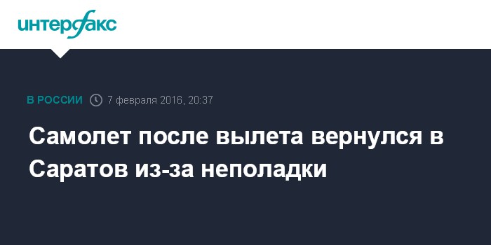 Москва. 7 февраля. INTERFAX.RU - Московский рейс авиакомпании "Саратовские авиалинии", который вылетел из Саратова в 16:15, вернулся в аэропорт вылета по технической причине, сообщили "Интерфаксу" в пресс-службе авиакомпании.