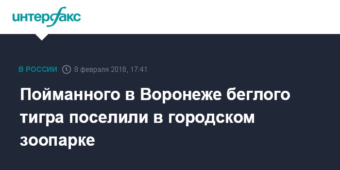 По данным департамента, 7 января 2016 года рано утром в лесу у трассы М-4 возле поворота на микрорайон Боровое под Воронежем был замечен тигр. Сотрудники оперативных служб поймали его на территории гаражного кооператива. Животное усыпили и доставили в зоопарк. В это же время нашелся владелец машины, из которой сбежал тигр.