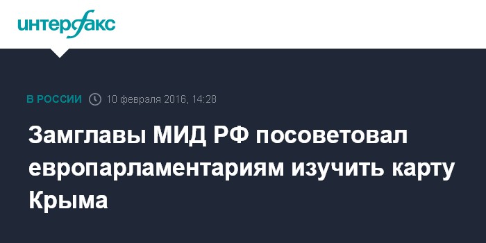 Москва. 10 февраля. INTERFAX.RU - Авторы резолюции Европарламента об увязке снятия санкций с России с возвращением Крыма под контроль Украины должны посмотреть на карту мира, где полуостров обозначен как территория РФ, заявляет замглавы российского МИД Алексей Мешков.