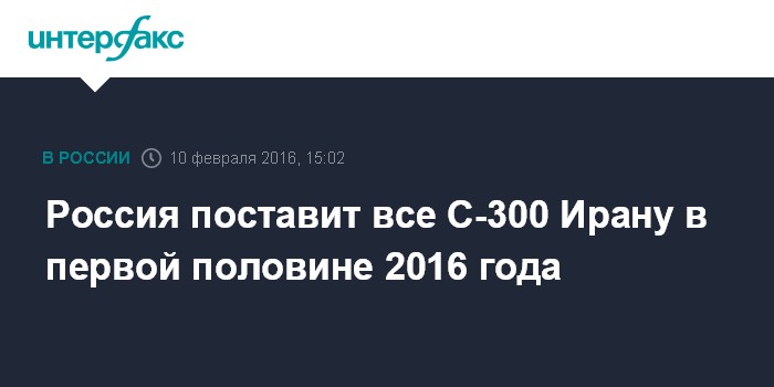 Россия поставит все С-300 Ирану в первой половине 2016 года
