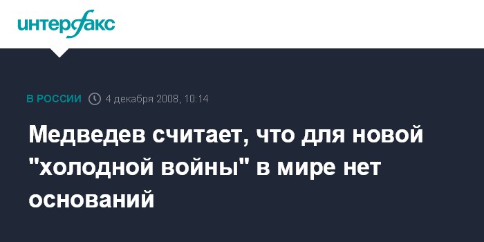 Москва. 4 декабря. INTERFAX.RU - Президент России Дмитрий Медведев исключает вероятность возврата к "холодной войне".